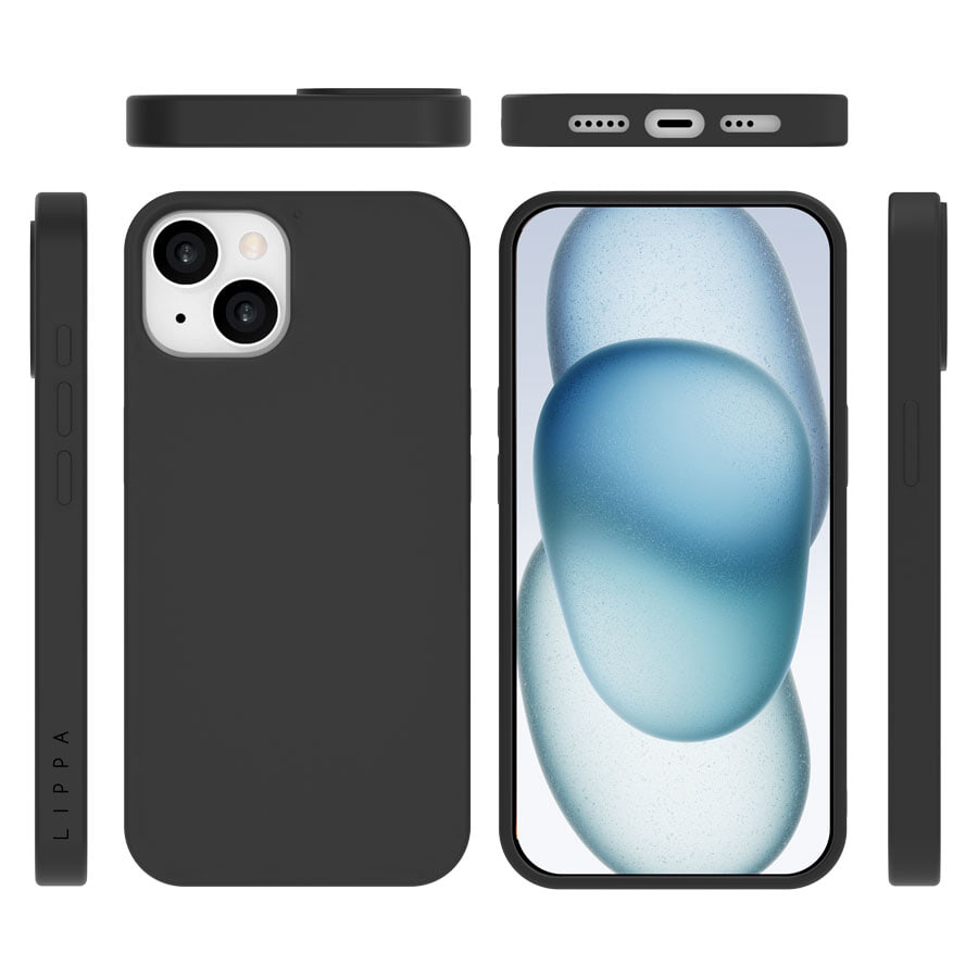 Elegant, mat sort finish, der matcher iPhone 15
