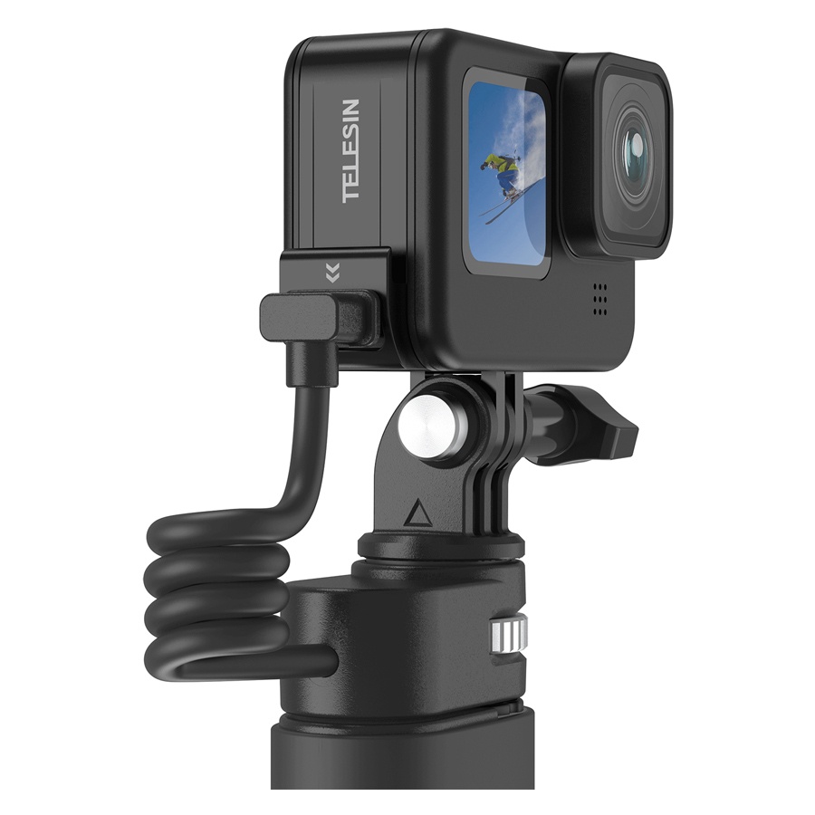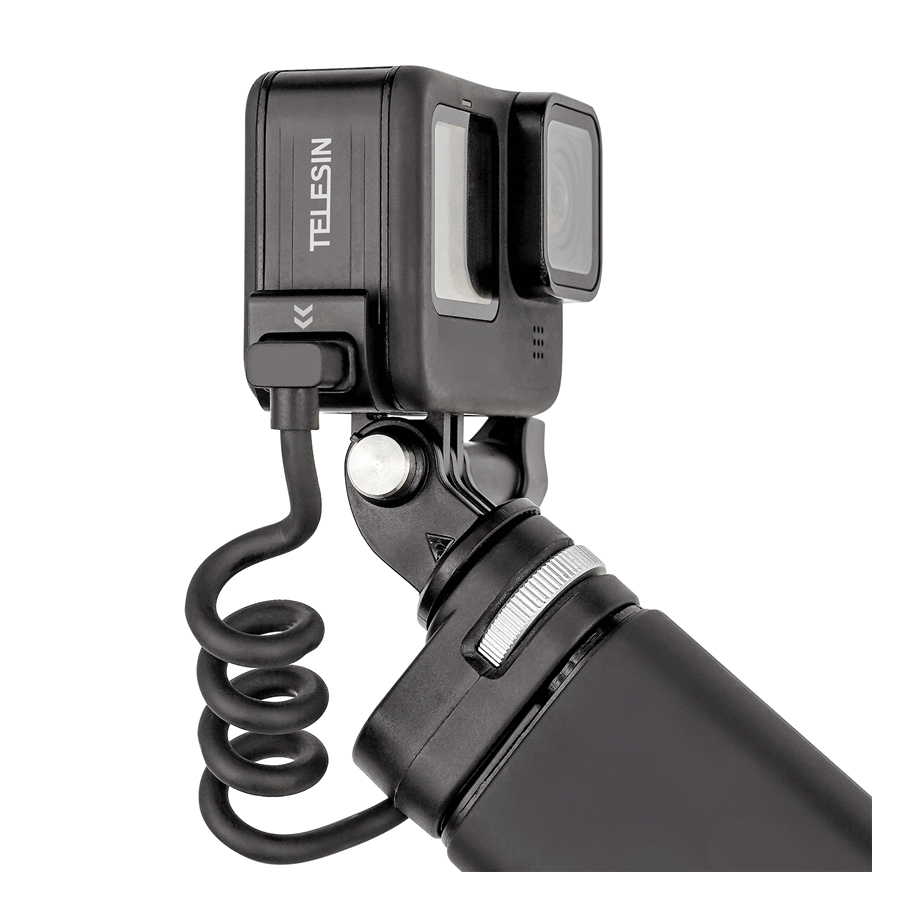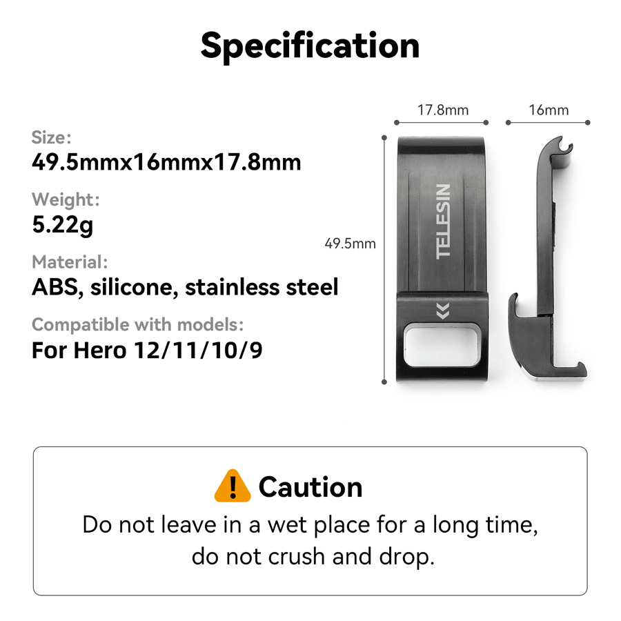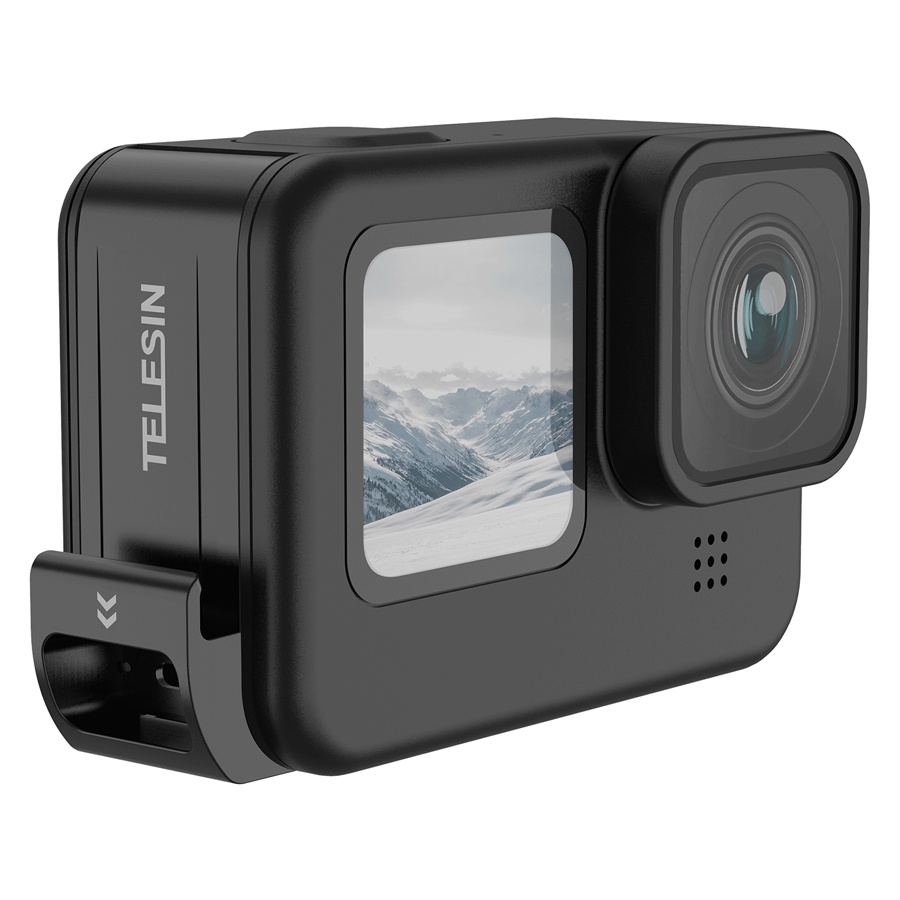 Oplad dit GoPro Hero 9 til 12 sikkert under alle forhold med Telesins regn- og sneafvisende batteridæksel.